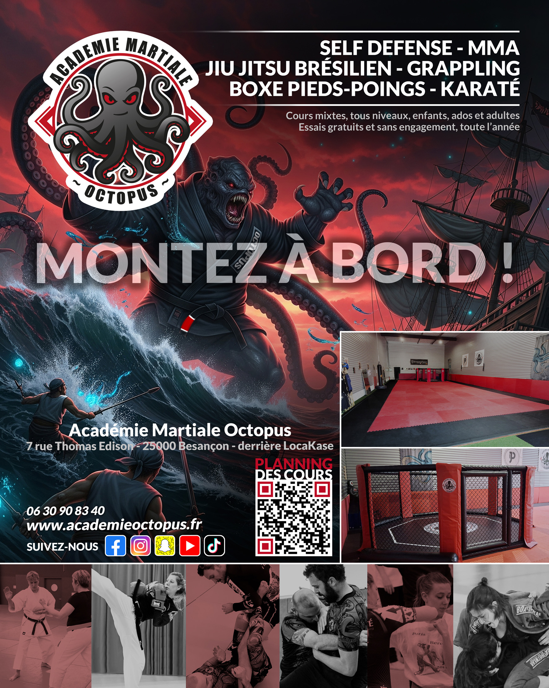Rejoignez l’Académie Octopus ! Tous les jours de la semaine à Besançon, sur un large panel d’arts martiaux et sports de combats. Et toujours aussi associatif dans l’âme !